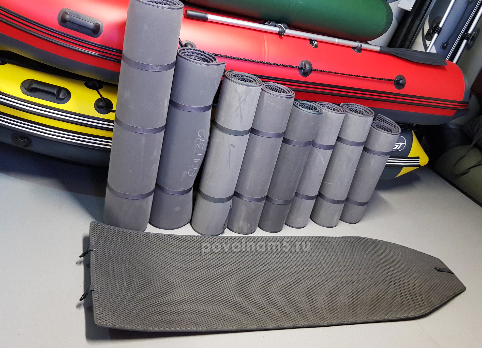 Коврик EVA для лодки не впитывает воду, а задерживает ее в своих ячейках, как и грязь, песок, снег. Отличается простотой в уходе: достаточно перевернуть коврик и после, при желании, промыть водой. Каждый коврик EVA оснащается стременными лентами с регулировочными пряжками, помогающими скрутить его в тугой рулон, удобный как для хранения, так и для переноски.