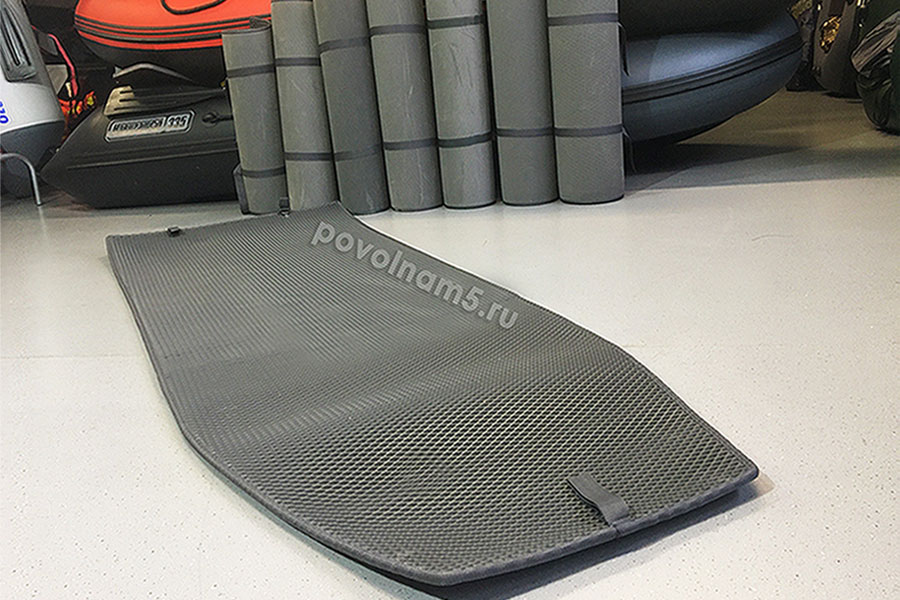 Коврик EVA для лодки не впитывает воду, а задерживает ее в своих ячейках, как и грязь, песок, снег. Отличается простотой в уходе: достаточно перевернуть коврик и после, при желании, промыть водой. Каждый коврик EVA оснащается стременными лентами с регулировочными пряжками, помогающими скрутить его в тугой рулон, удобный как для хранения, так и для переноски.