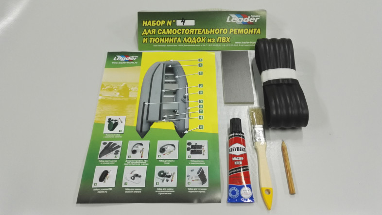 Ремкомплект №4 для защиты транца лодки - набор для ремонта ПВХ лодок. В набор входят ПВХ профиль и клей.