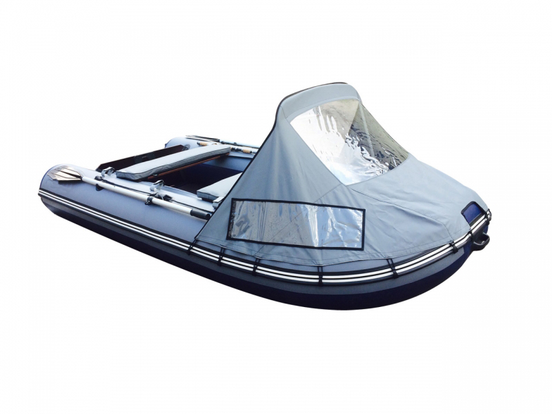 Носовой тент со стеклом служит отличной защитой от попадания в лодку брызг и волн во время движения. Благодаря своим аэродинамическим свойствам, тент благоприятно сказывается на ходовых качествах лодки. Хорошую видимость курса обеспечивает встроенное в тент смотровое стекло, выполненное из прозрачного ПВХ.