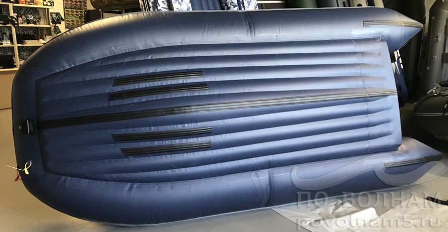 Лодка Флагман 380 за счет умеренно килевого дна обладает хорошей курсовой устойчивостью и легко выходит на глиссер как при минимальной загрузке на моторе 5 л.с., так и при загрузке в 5 человек с мощным мотором до 20 л.с. В сложенном состоянии лодка легко помещается в багажник любого автомобиля.