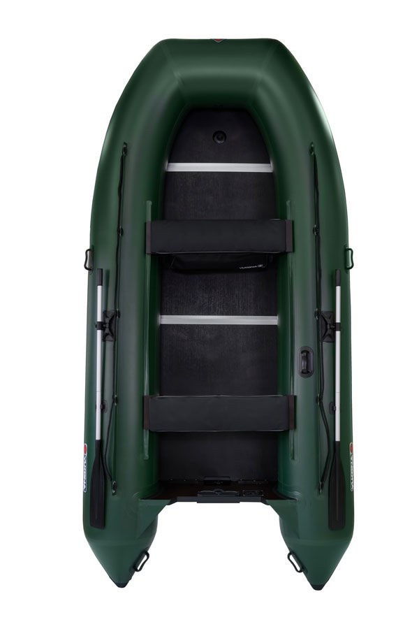 Лодка Yukona 430TS- U - это, несомненно, весьма крупная и вместительная моторная килевая ПВХ модель. В кокпите размером 291х100 см с комфортом сможет устроиться большая компания - по вместимости судно рассчитано на 8 человек, а его грузоподъемность составляет 880 кг. Также размер кокпита позволяет разместить рулевую консоль. Увеличенный до 50 см диаметр баллона, передвижные сидения и расширенная комплектация добавляют комфорта в использование. На стационарный транец можно установить мотор мощностью до 30 л.с. Настил приобретается отдельно.