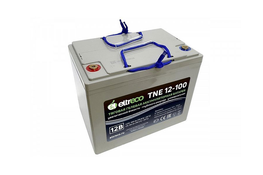 Тяговый аккумулятор Eltreco TNE12-100 (12V80A/H C3) разработан для лодок и судов, морских и речных яхт с электромоторами. Также АКБ подходит и для любого электротранспорта: от электросамокатов и электроскутеров до крупной складской и грузовой техники, поломоечных и уборочных машин. Данный аккумулятор произведен по технологии AGM в сочетании с электролитом из наноразмерного силикагеля. В результате акб устойчив к глубоким разрядам, выдерживает 900 полных циклов заряд/разряд при глубине разряда 75%, не нуждается в доливе воды на протяжении всего срока службы и стабильно работает в температурном диапазоне от -15°C до +40°C.